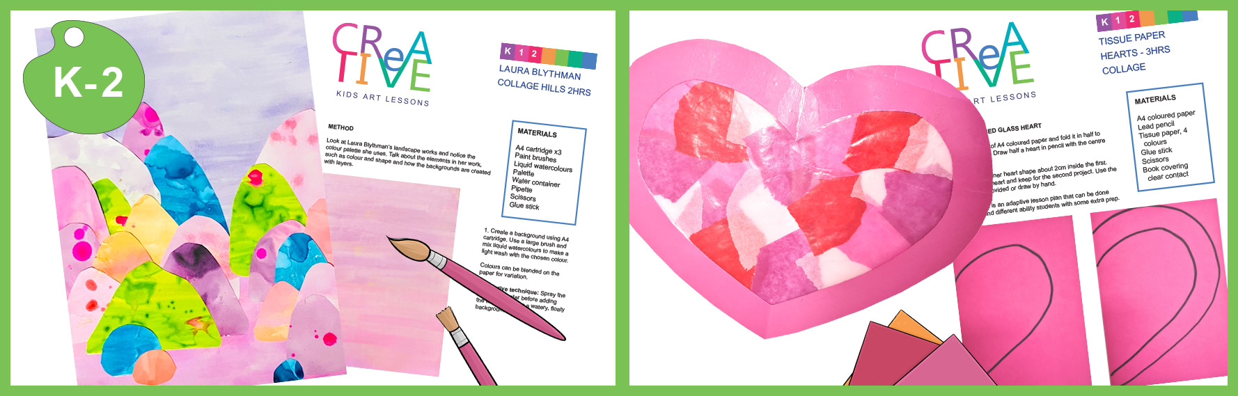We explore the work of Australian artists Pete Cromer, Anna Blatmann and Laura Blythman, looking at their techniques and creative approaches. 5-6 students create an artwork inspired by illustration techniques, and there are two adaptive tissue paper heart projects for K–2.