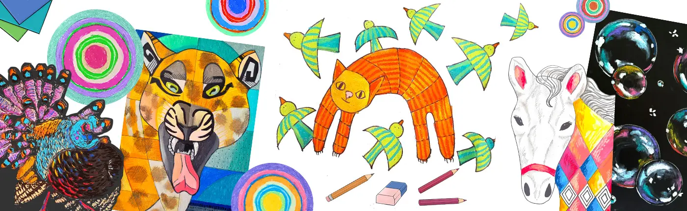 Experiment with different drawing media from oil pastel to paint sticks and lead pencil in these colourful drawing projects for grades 3 and 4. Your students will have fun with bubbles in this engaging art lesson, blowing bubbles or using a bubble wand and then observing all the colours of the rainbow! We’ll draw the bubbles in oil pastel and add colour to make them pop. There is even an idea for a whole class bubble art display.