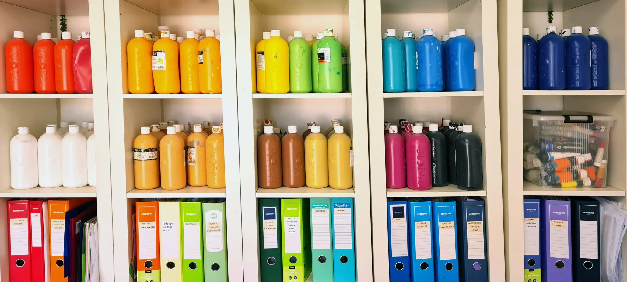 Here is where you can pull out the less than perfect supplies and set them aside for classroom teachers. If you are not sure what to keep or throw out have a look at our art materials list of supplies or ask on our Creative Teachers Facebook page for some help. We are always happy to assist. Old artworks that have been left behind can be used for your first art displays so there is something on the walls to greet your classes.