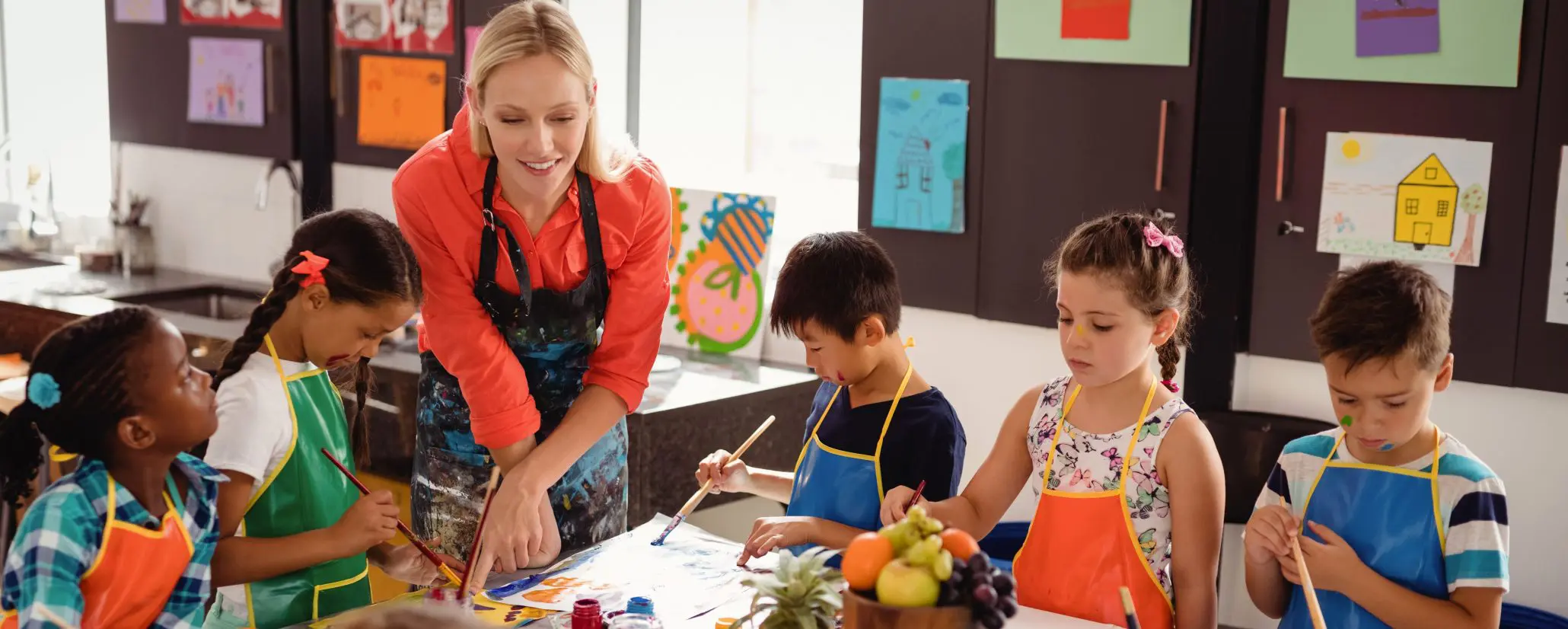 Demonstrate and teach techniques like colour mixing and brush care before letting the kids loose on supplies.